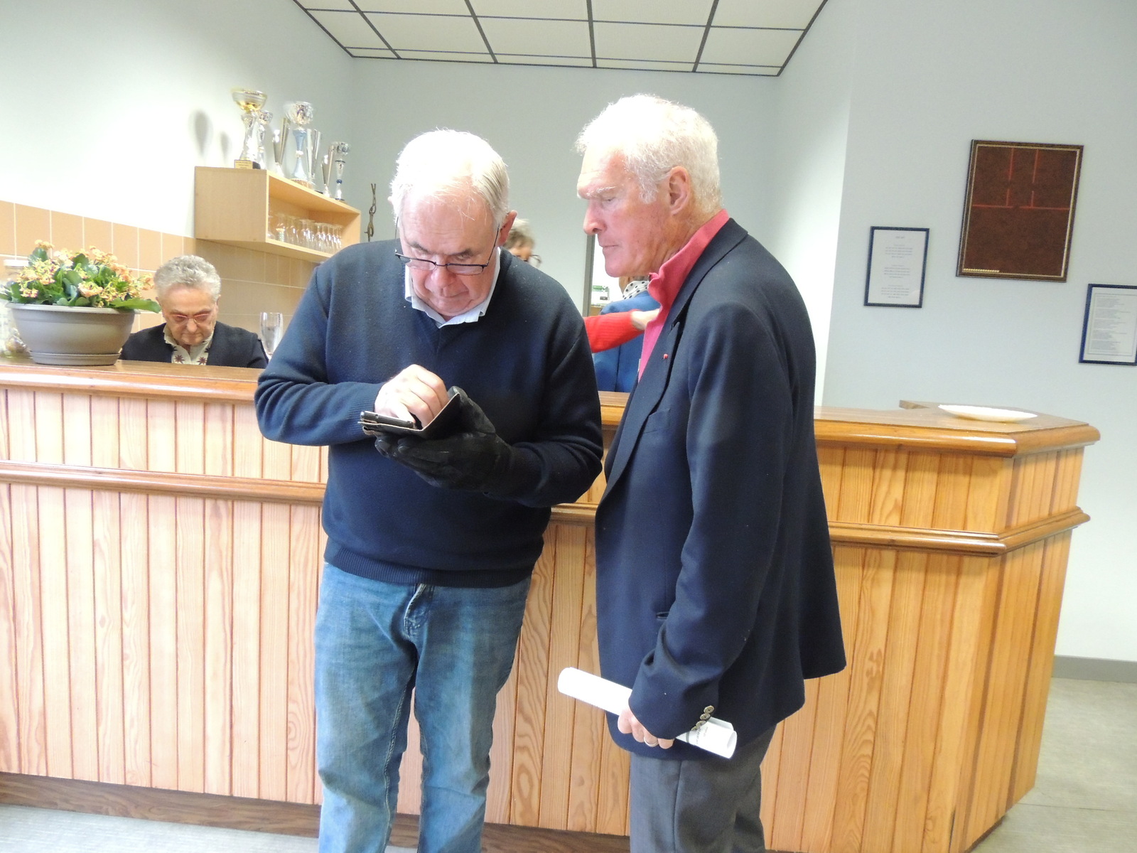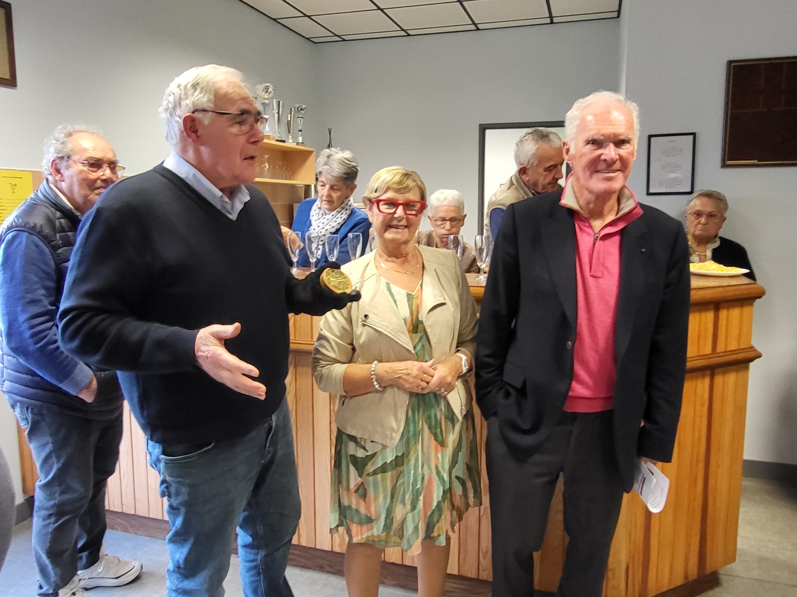 Remise de la médaille du Comité d'Anjou à Pierre par Jean-Paul Noury, le 21 octobre dernier.